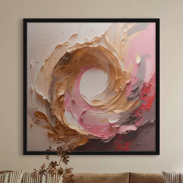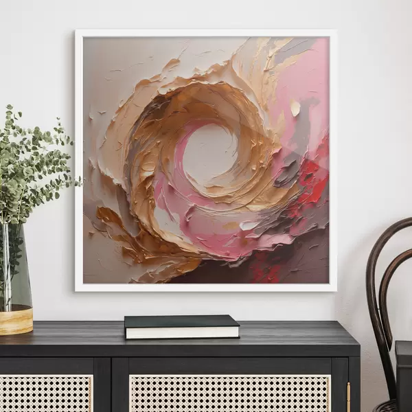 Poster Abstract olieverfschilderij met roze draaikolk f40863