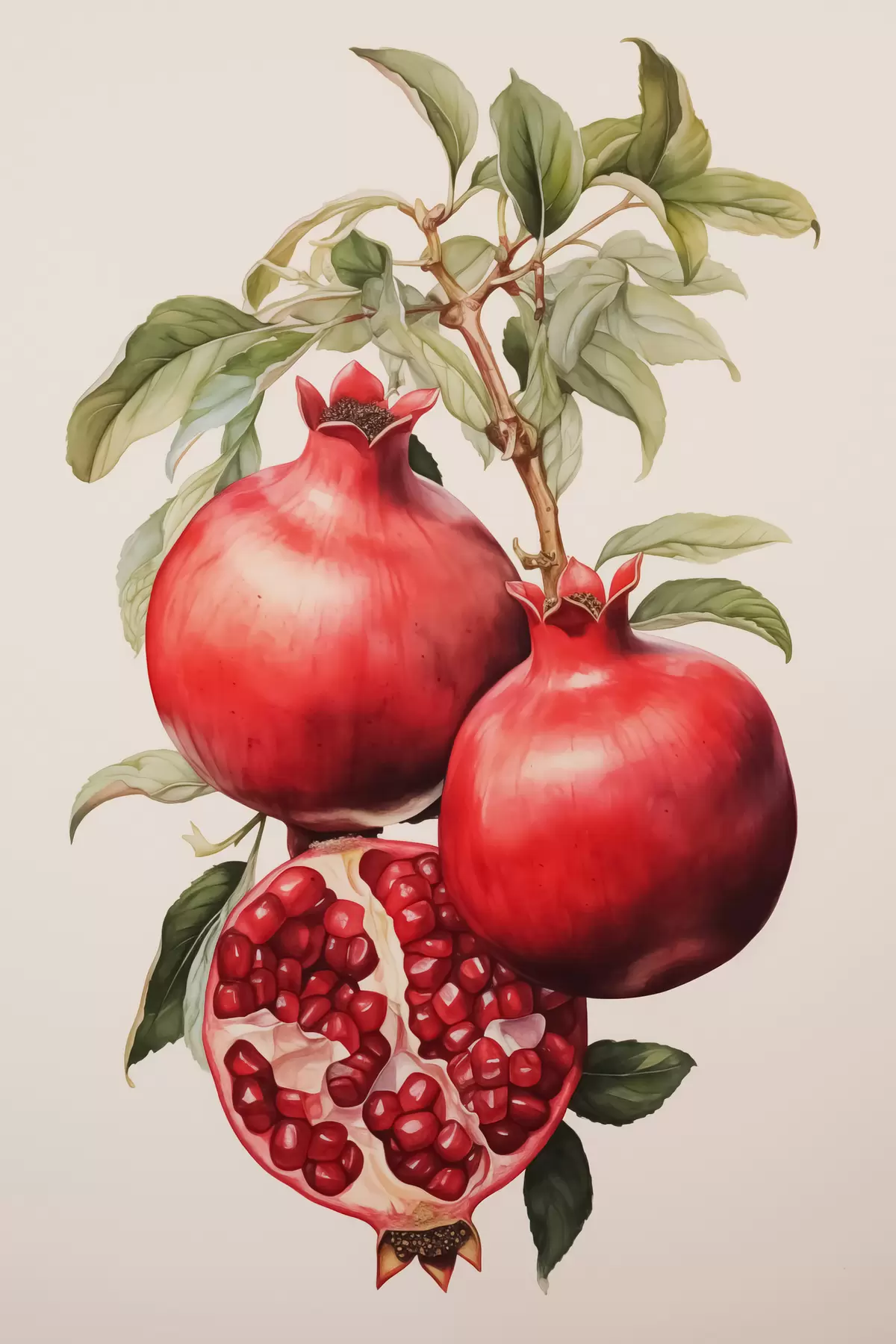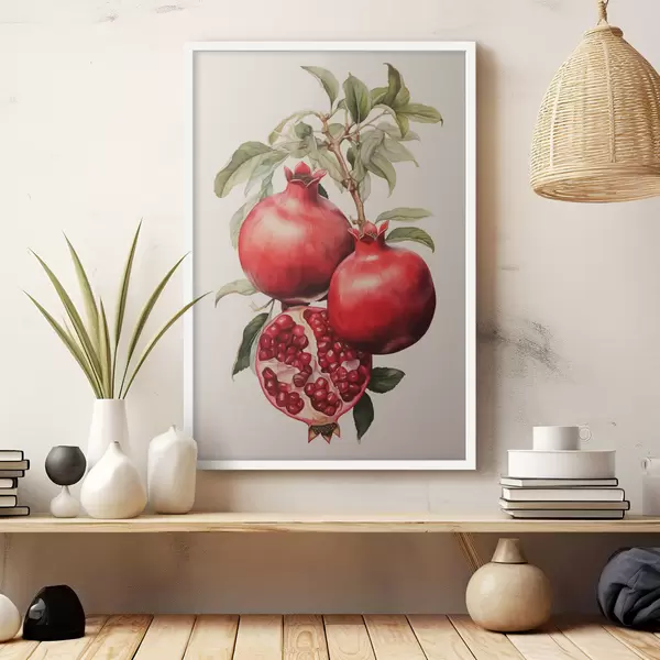 Poster Rijpe granaatappels aan een tak Nr f40884
