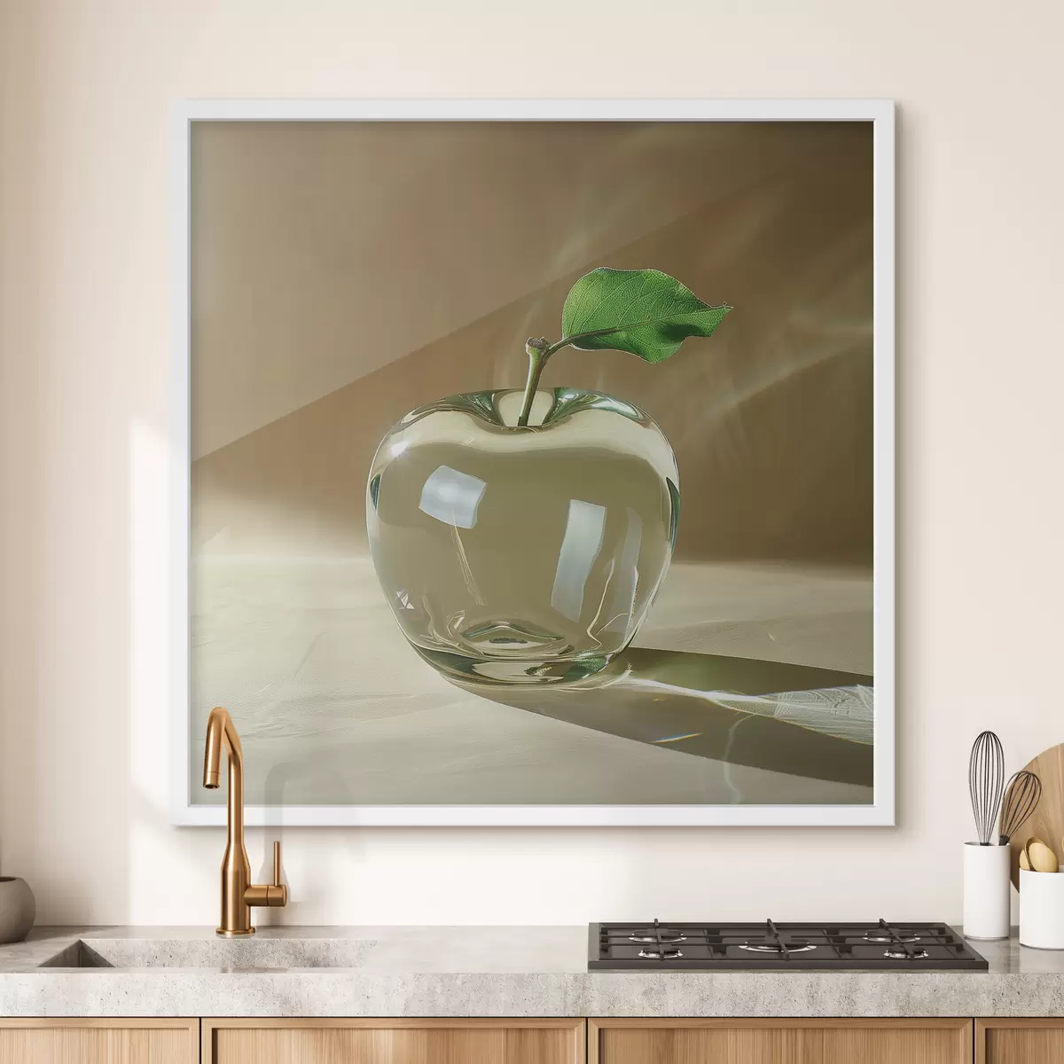 Poster Transparante glazen appel op een lichte achtergrond Nr f40913