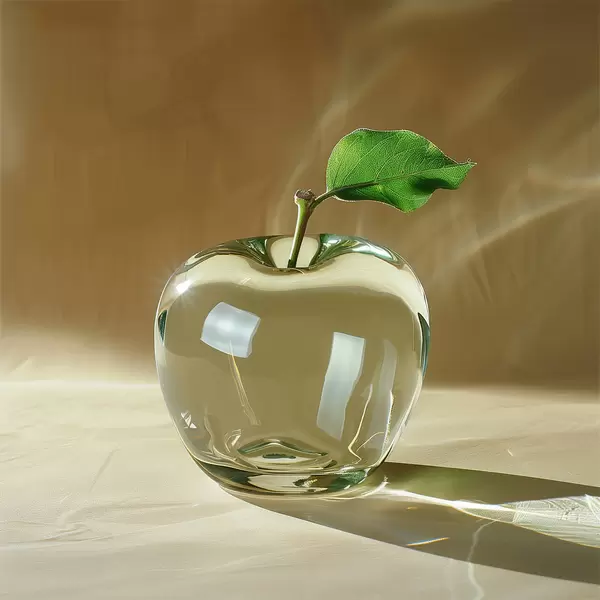 Poster Transparante glazen appel op een lichte achtergrond f40913