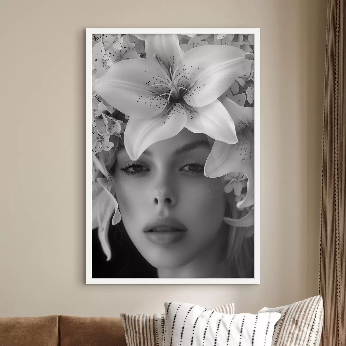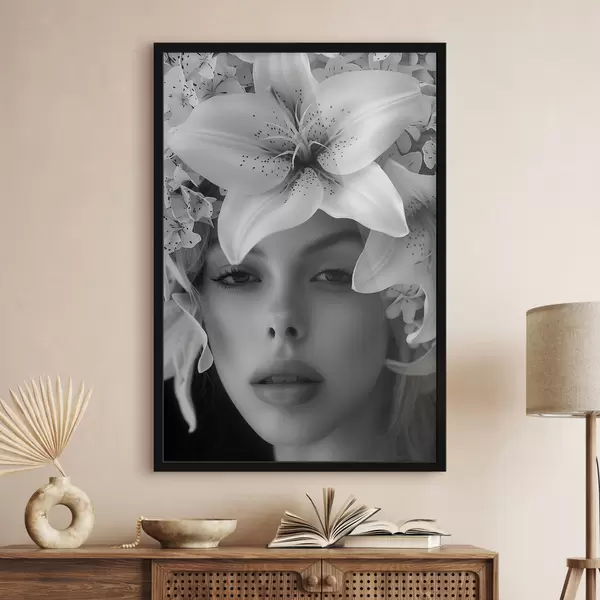 Poster Witte grote lelies en het gezicht van een meisje Nr f40937