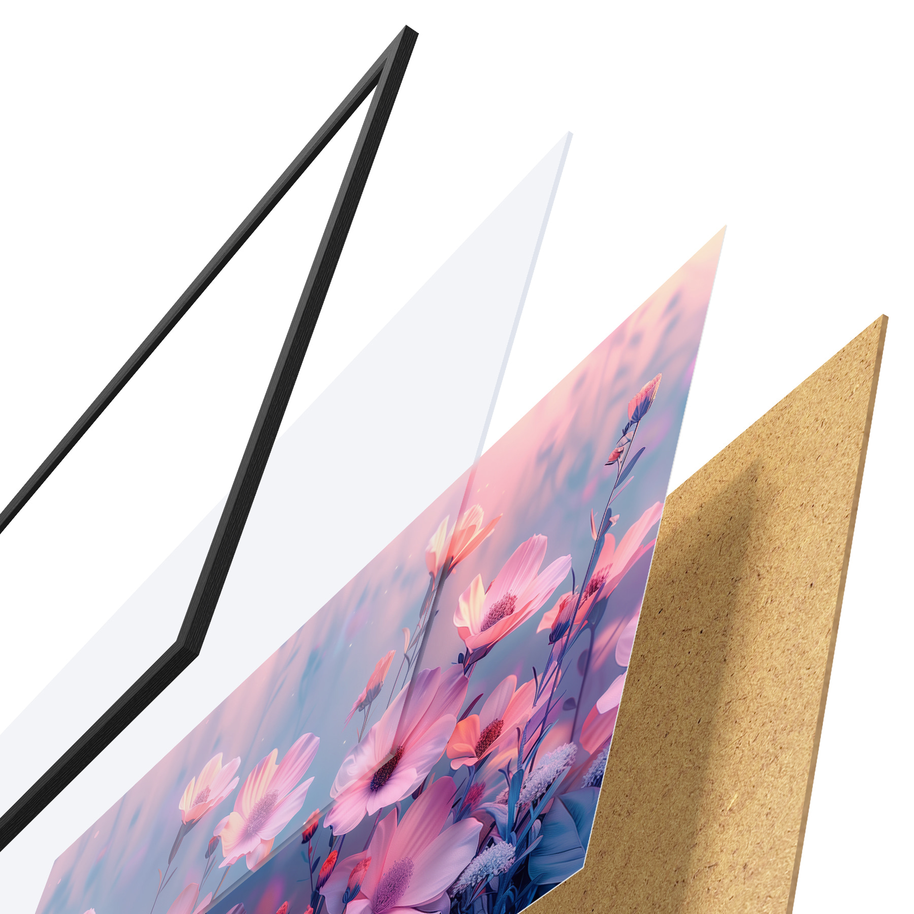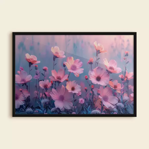 Poster Sprookjesachtige wilde bloemen in roze en blauwe tinten Nr f40990
