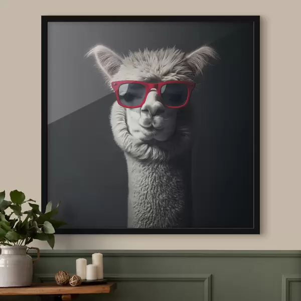 De poster bestaat uit een frame, plexiglas, geprinte afbeelding en spaanplaat achterkant. De poster kan meteen aan de muur worden gehangen dankzij de bevestigingen op de achterkant.