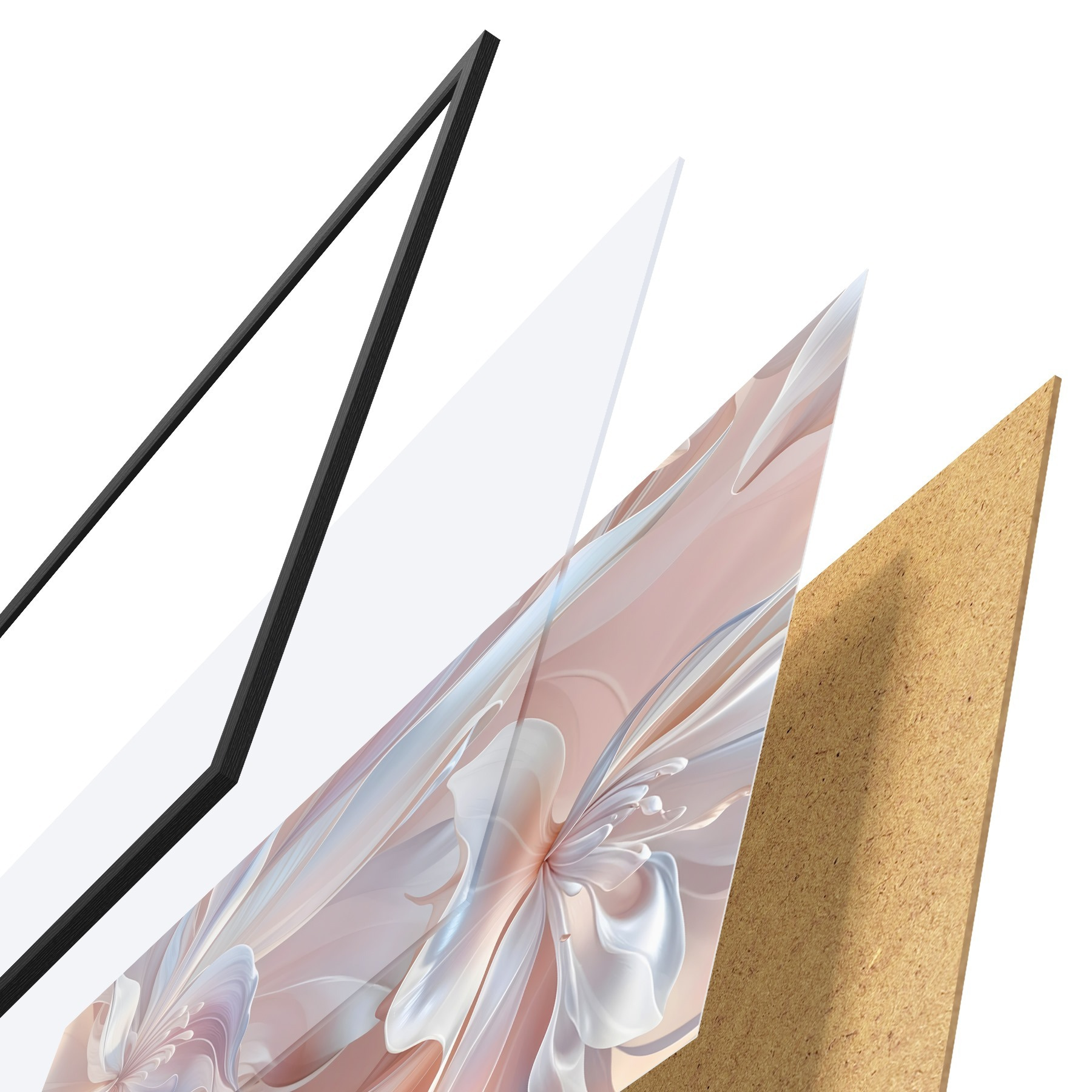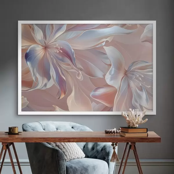 Poster Delicate, pastelkleurige bloemblaadjes met vloeiende vormen en texturen, waardoor een abstracte bloemencompositie ontstaat Nr f41098