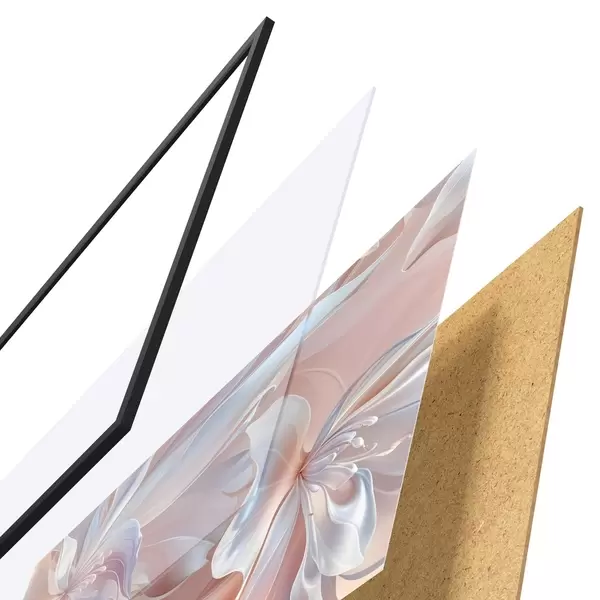 De poster bestaat uit een frame, plexiglas, geprinte afbeelding en spaanplaat achterkant. De poster kan meteen aan de muur worden gehangen dankzij de bevestigingen op de achterkant.