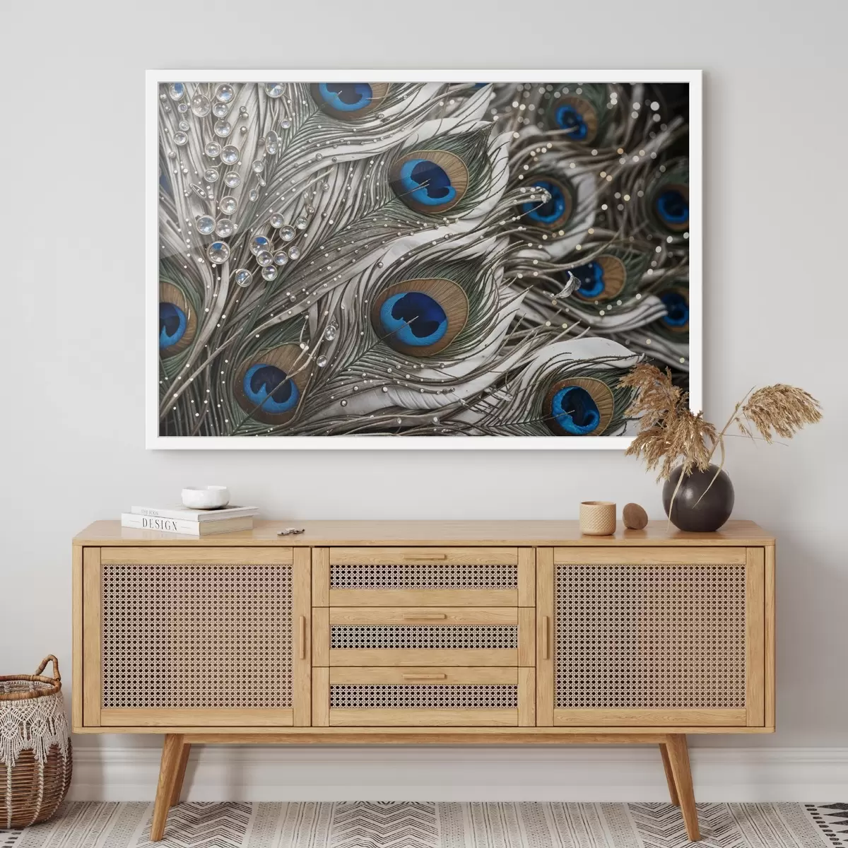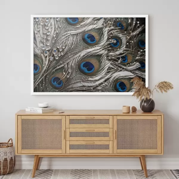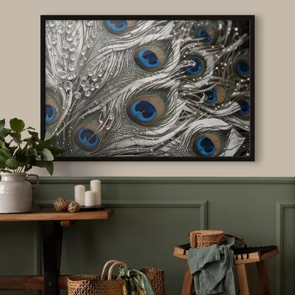Poster Levendige pauwenveren met ingewikkelde patronen en opvallende blauwe motieven Nr f41103