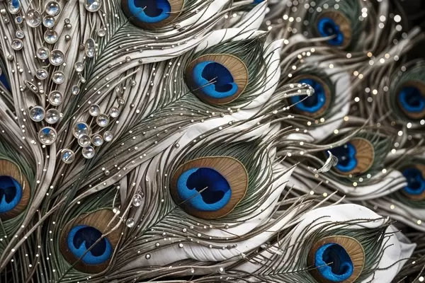 Poster Levendige pauwenveren met ingewikkelde patronen en opvallende blauwe motieven Nr f41103