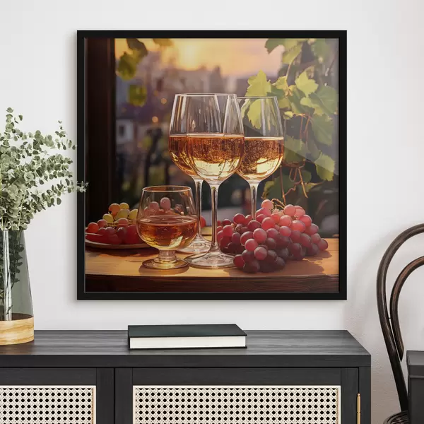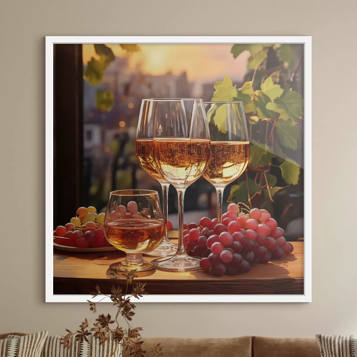 Poster glazen met wijn, druiven op tafel, stilleven Nr f41104