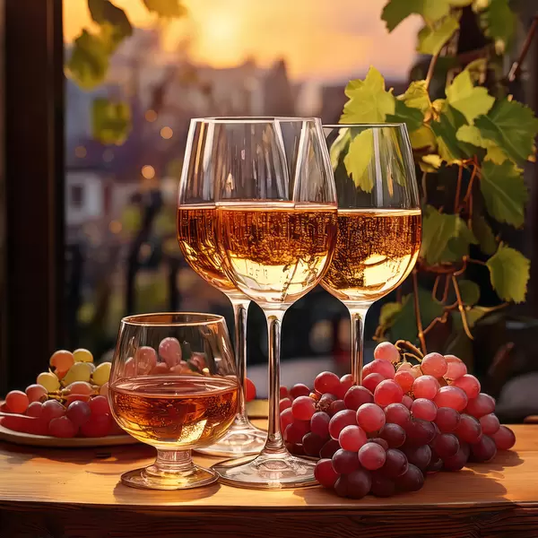Poster glazen met wijn, druiven op tafel, stilleven f41104