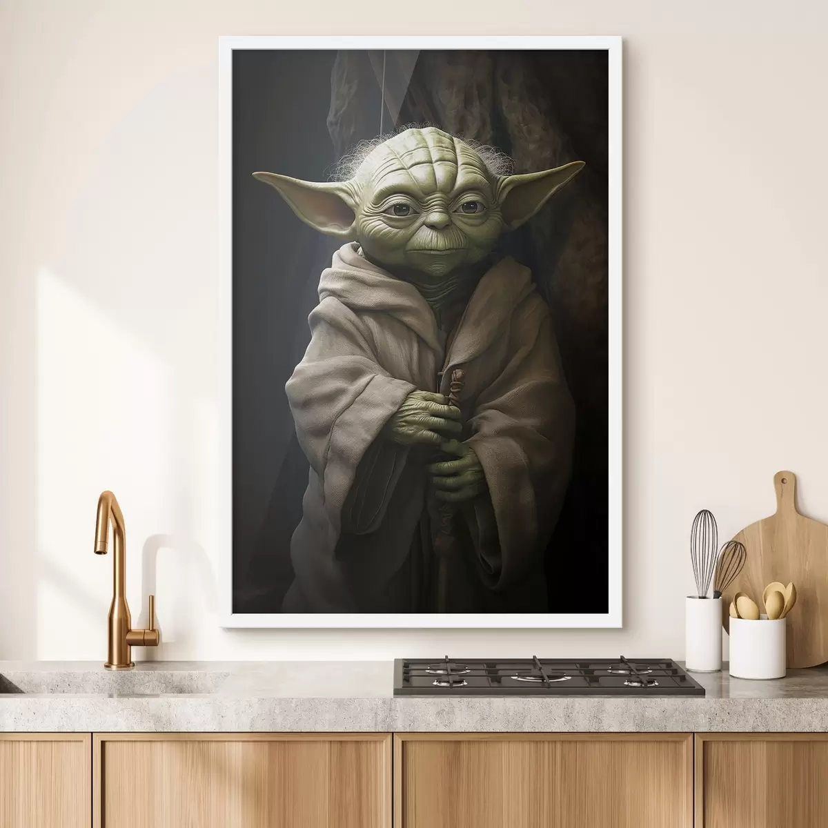 De poster bestaat uit een frame, plexiglas, geprinte afbeelding en spaanplaat achterkant. De poster kan meteen aan de muur worden gehangen dankzij de bevestigingen op de achterkant.