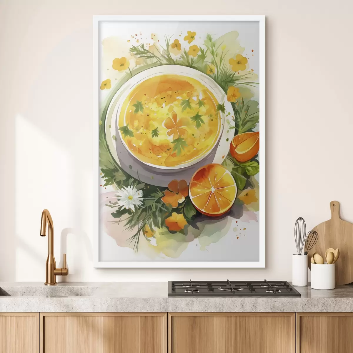 Poster Pompoensoep, aquarel, herfstkleuren, oranje f41170