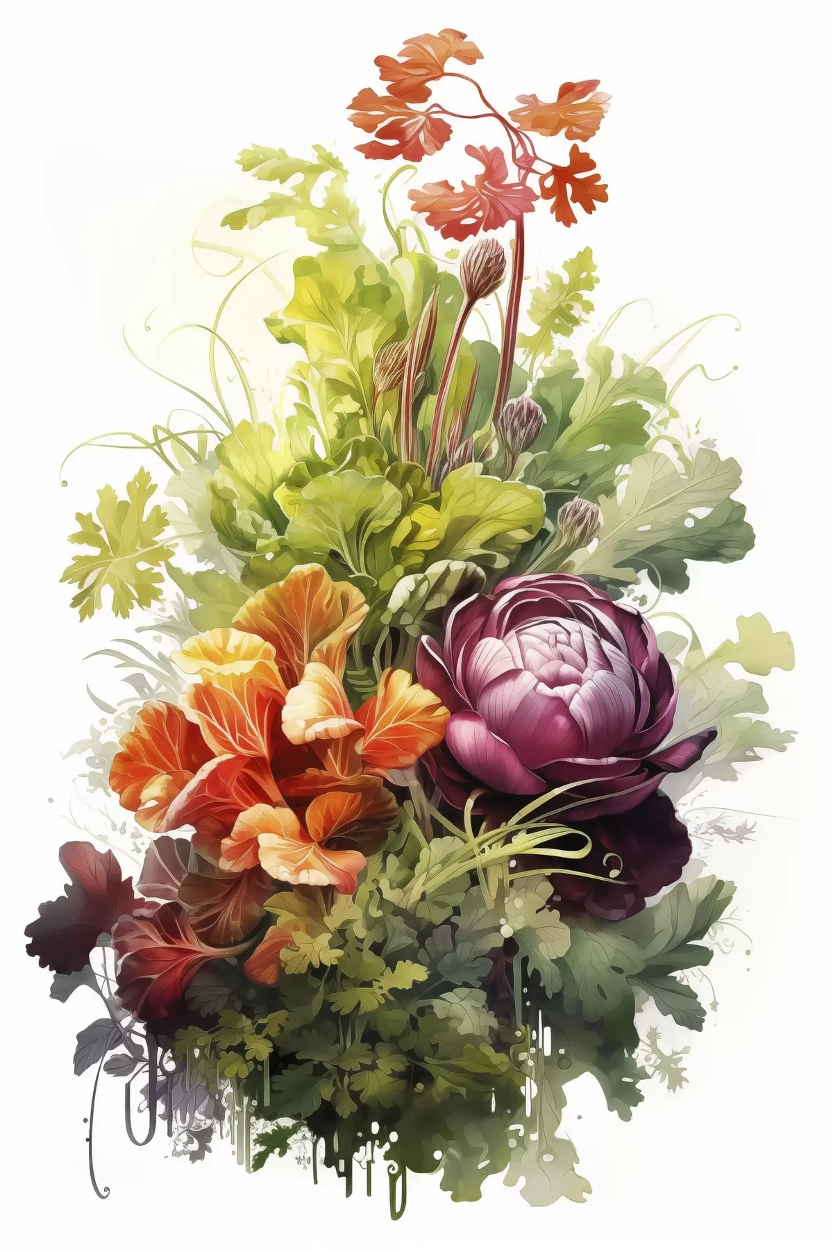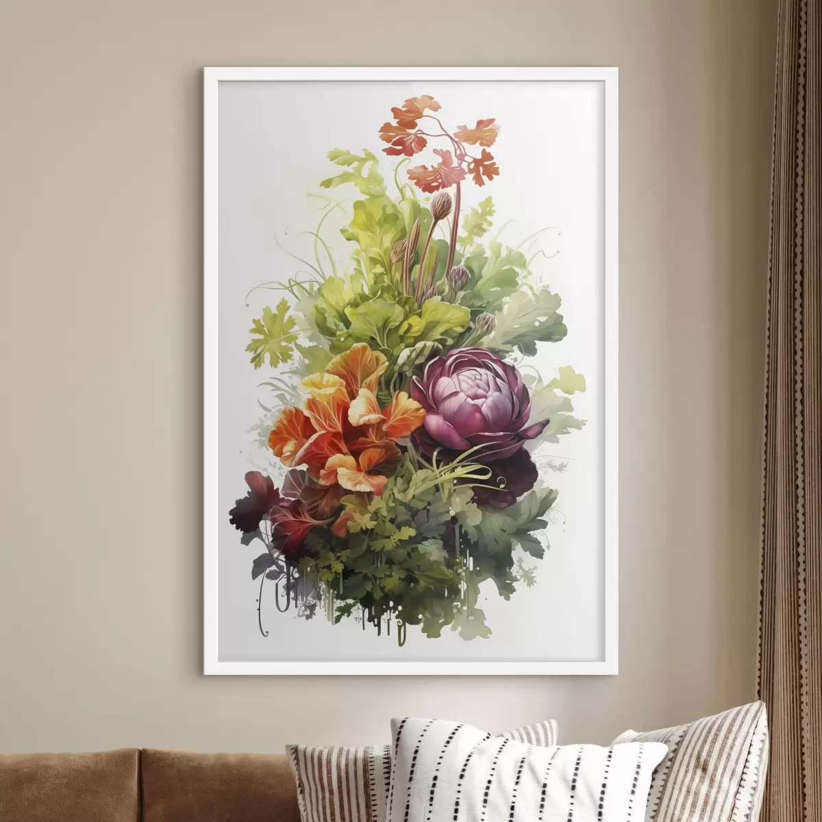 Poster Groenteoogst, aquarel, groen, bloemen Nr f41173
