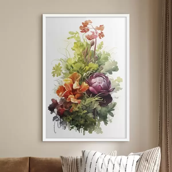 Poster Groenteoogst, aquarel, groen, bloemen f41173