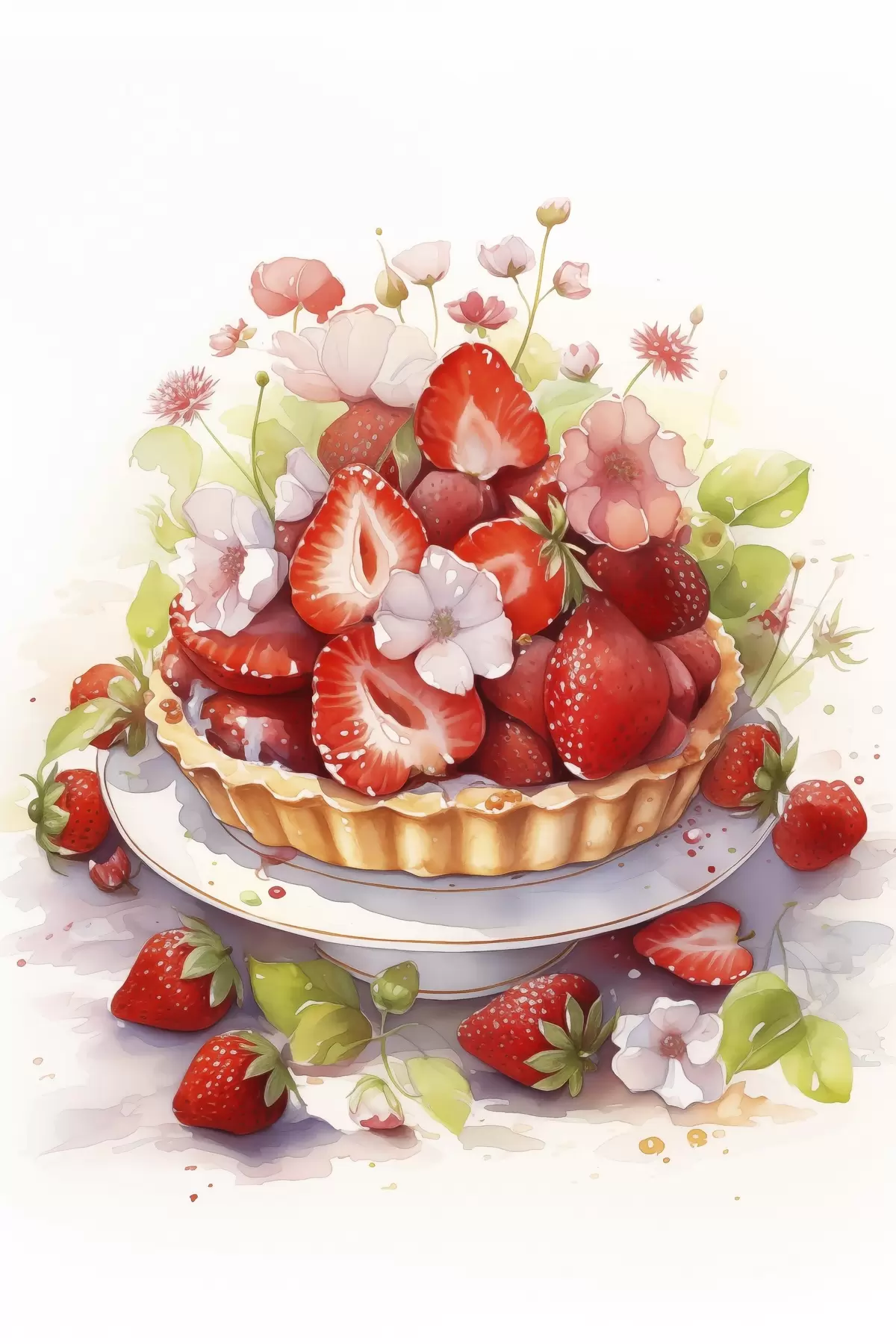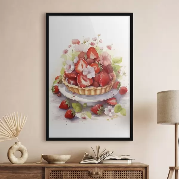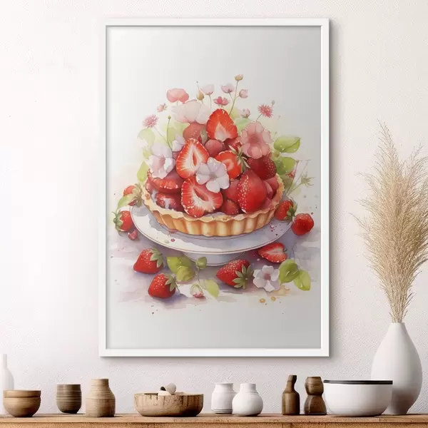 Poster Aardbeientaart, aquarel, bloemen Nr f41177