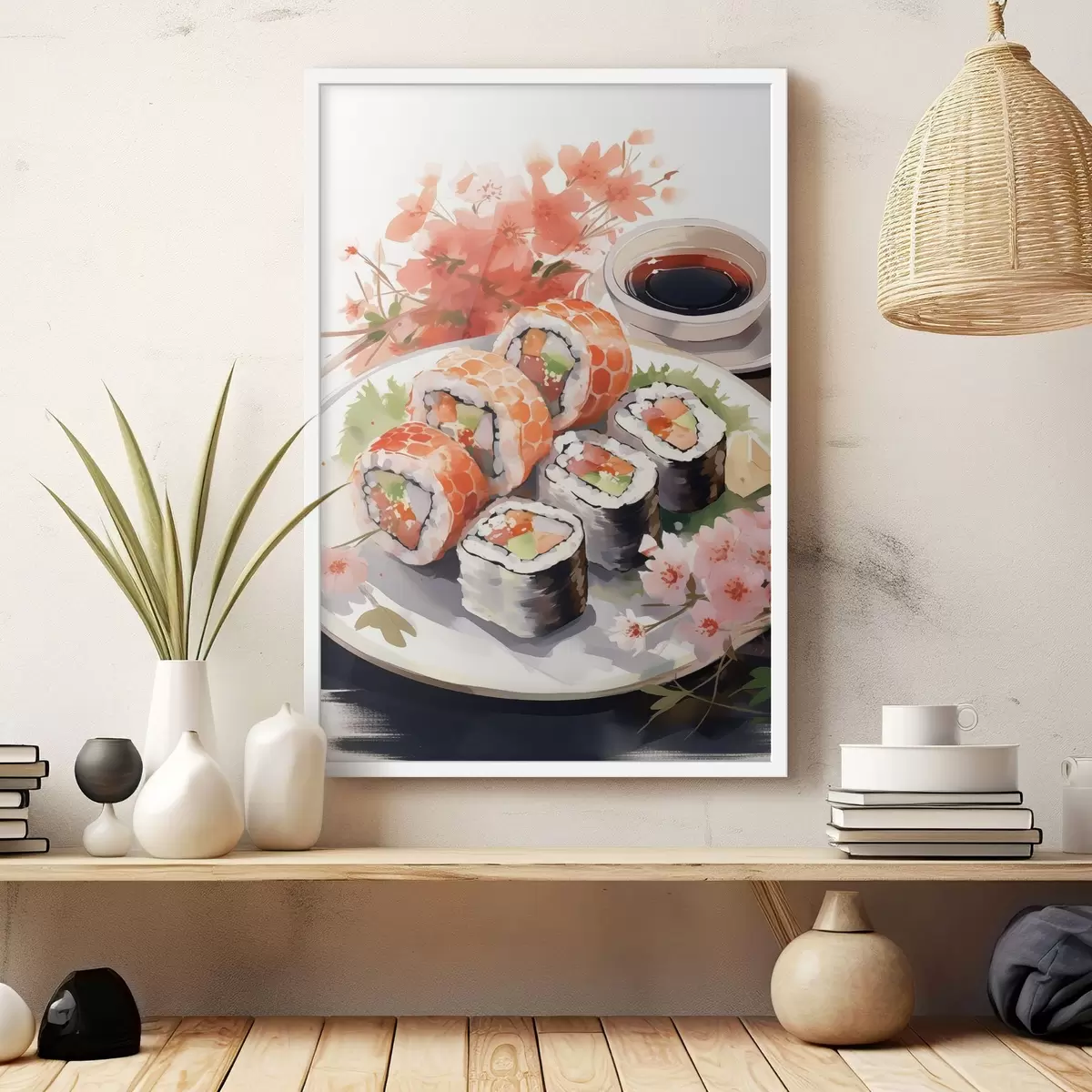 Poster Sushi op het bord, aquarel, bloemig, Japans f41179