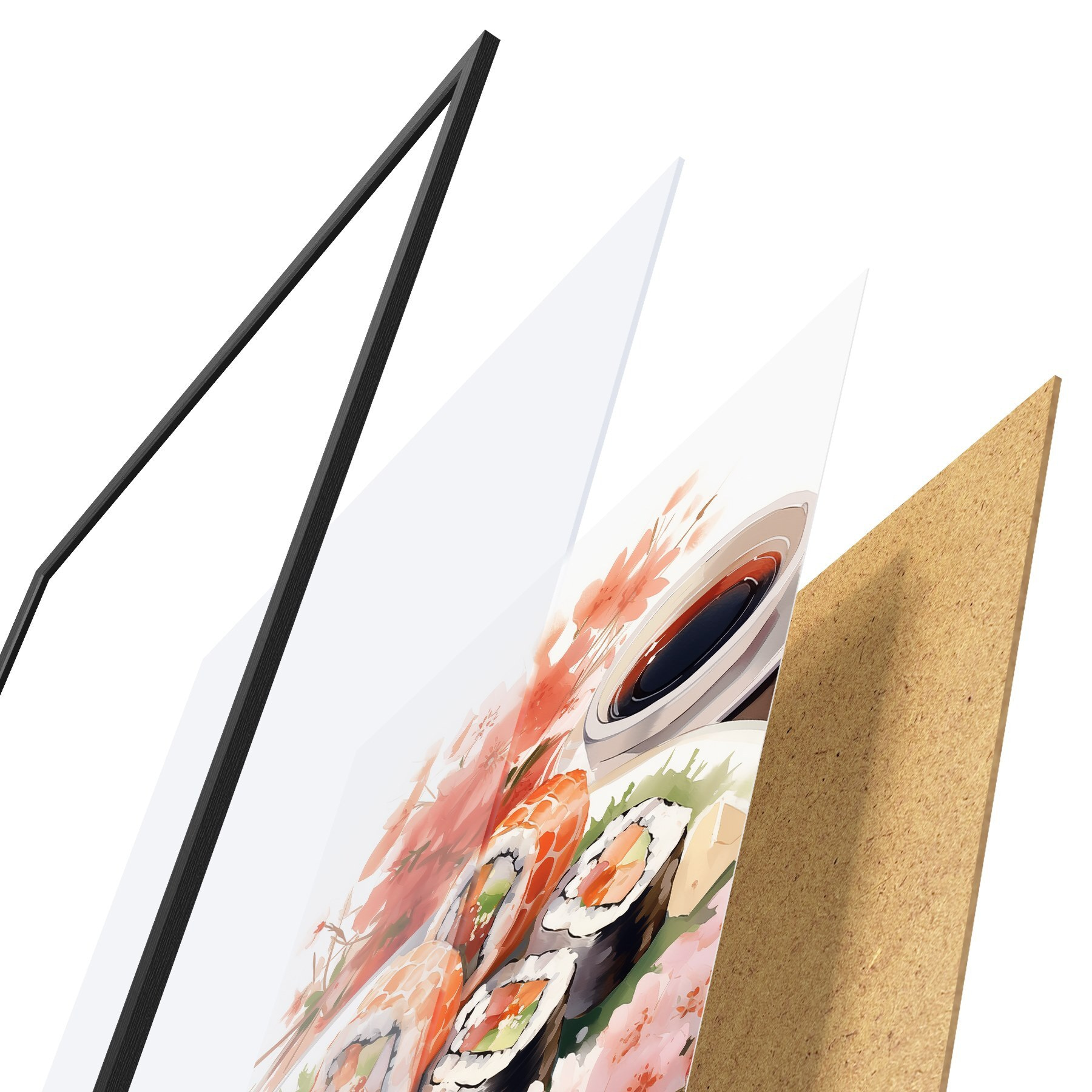 Poster Sushi op het bord, aquarel, bloemig, Japans Nr f41179