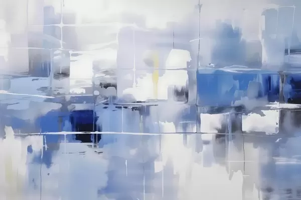 Poster Een moderne abstractie in blauw-, wit- en grijstinten met vage lijnen en vormen Nr f41269