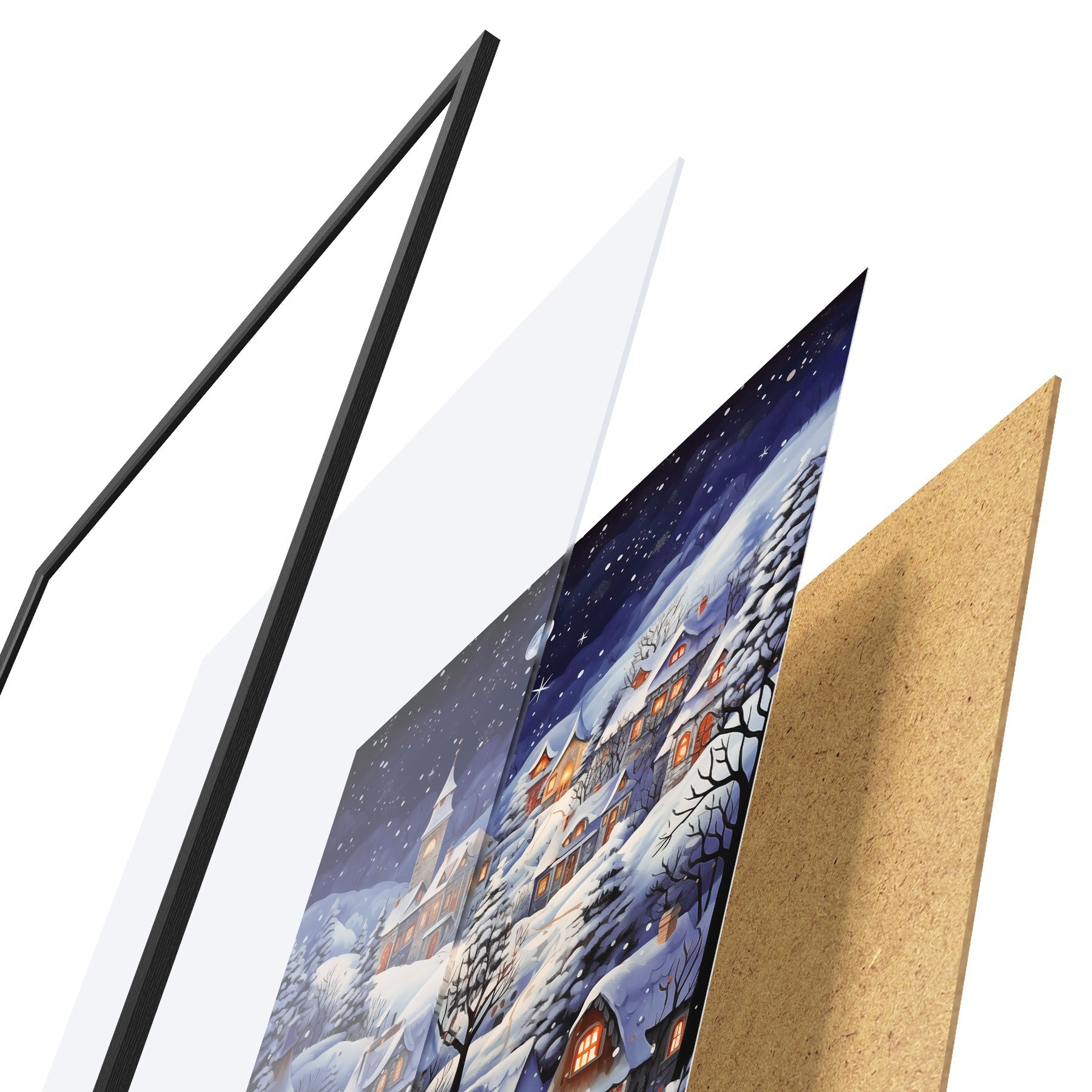 De poster bestaat uit een frame, plexiglas, geprinte afbeelding en spaanplaat achterkant. De poster kan meteen aan de muur worden gehangen dankzij de bevestigingen op de achterkant.