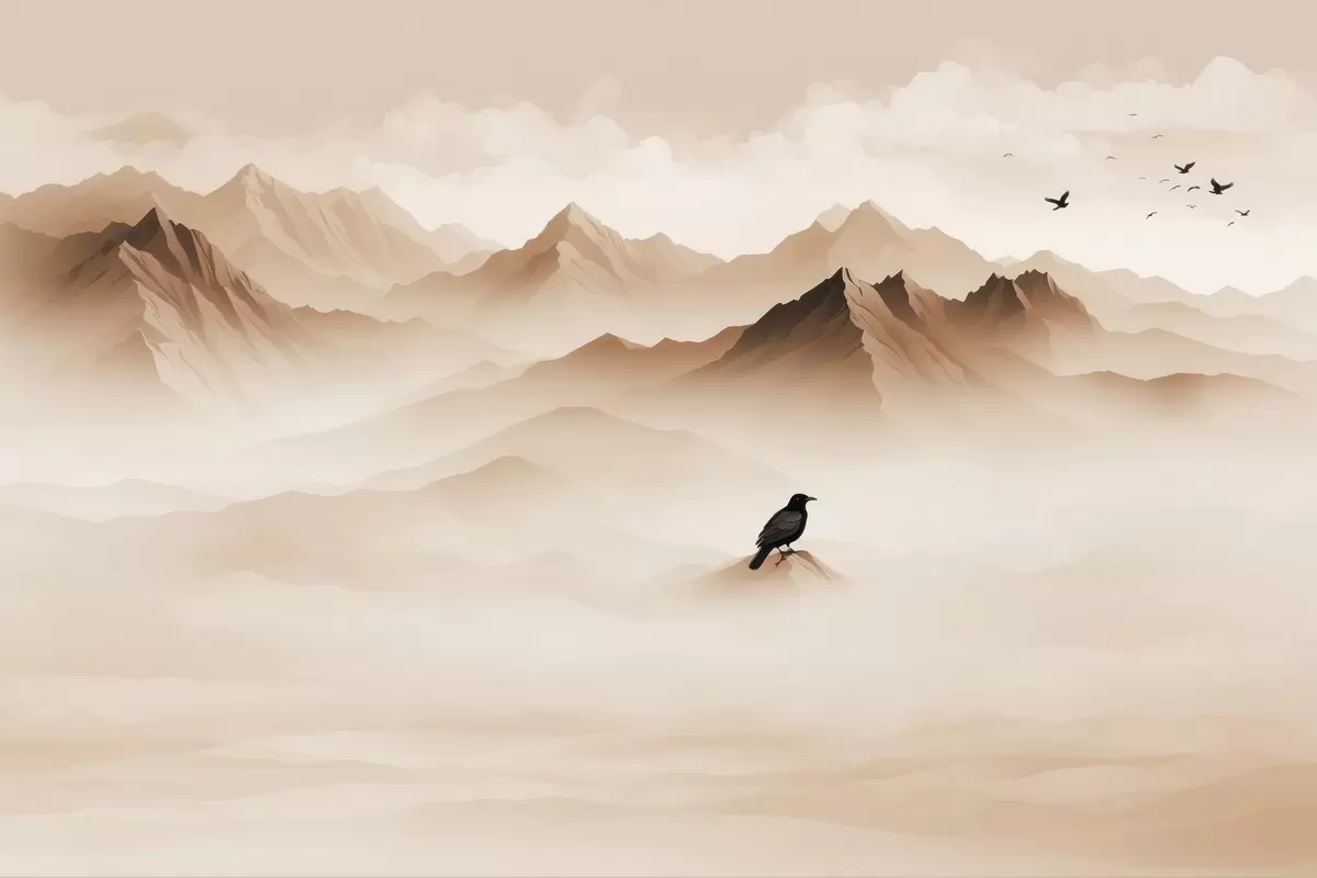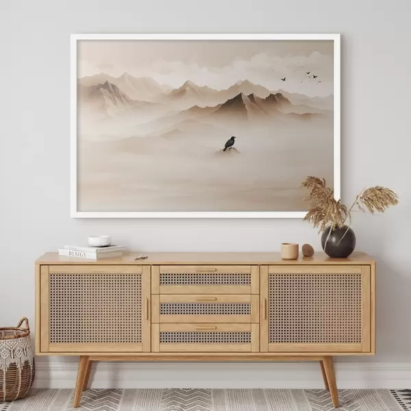 Poster Bergen in mist in vectorafbeelding Nr f41295