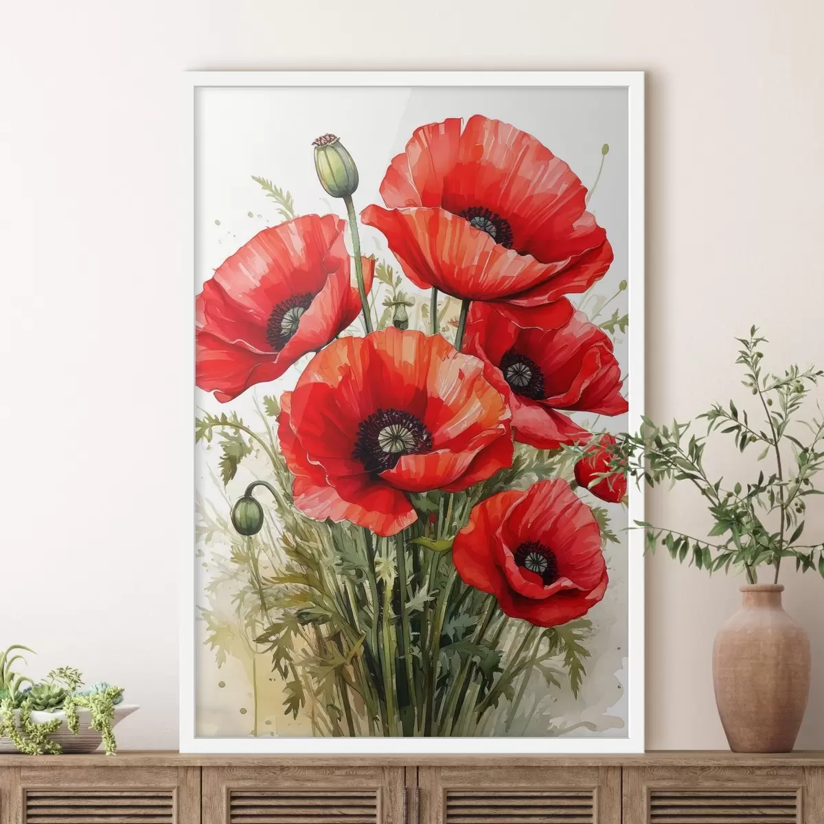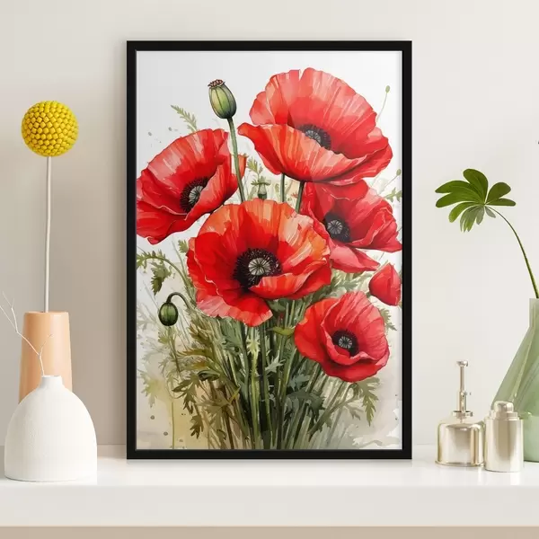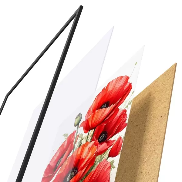 De poster bestaat uit een frame, plexiglas, geprinte afbeelding en spaanplaat achterkant. De poster kan meteen aan de muur worden gehangen dankzij de bevestigingen op de achterkant.