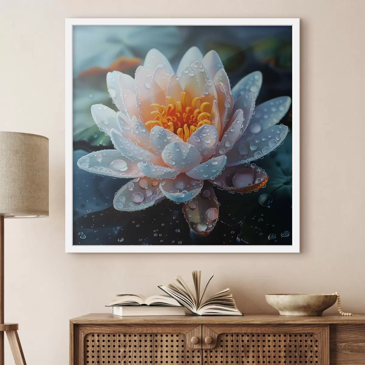 Poster Lotusbloem met dauwdruppels Nr f41433