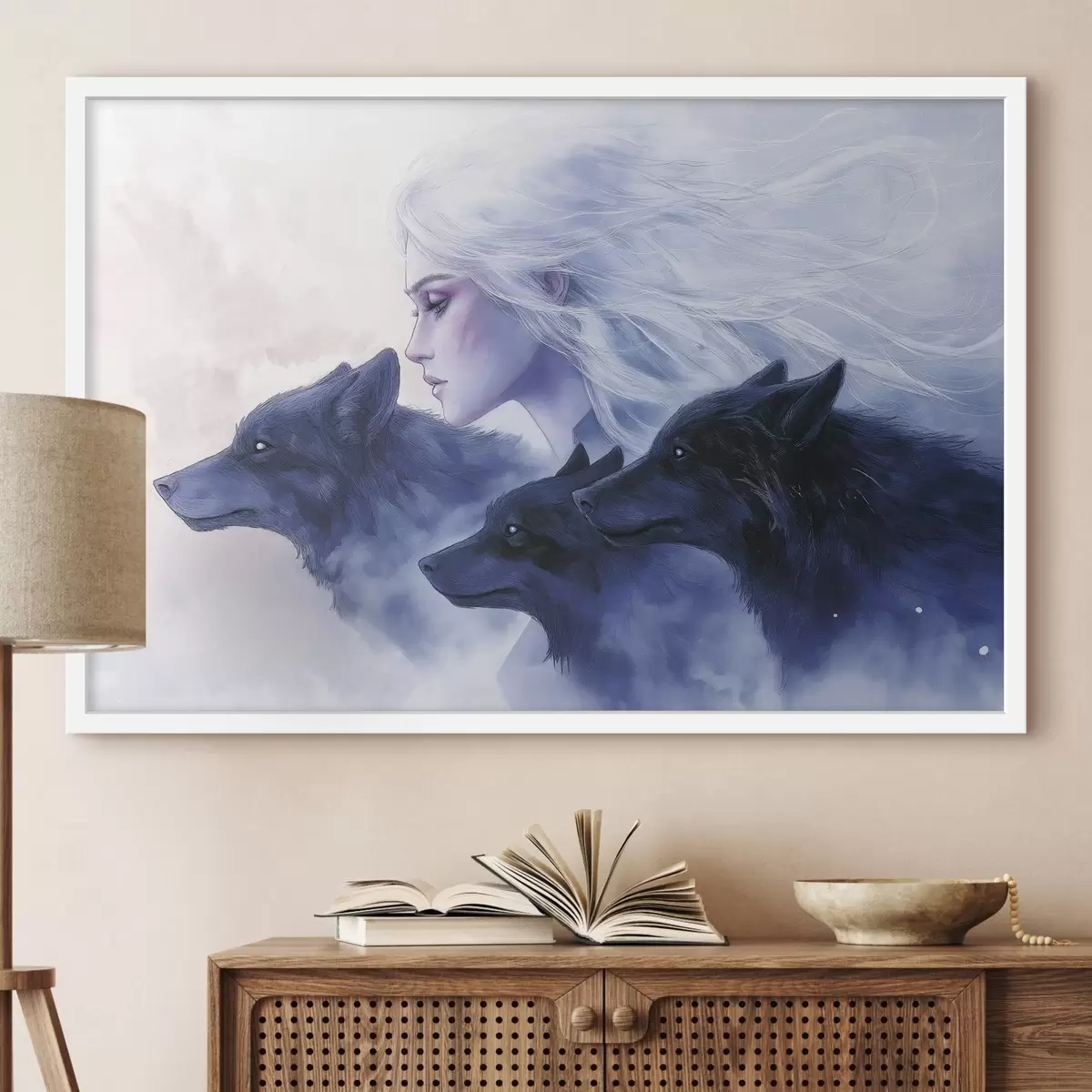 Poster Winter, vrouw met wolven, mist, mysterieus Nr f41460