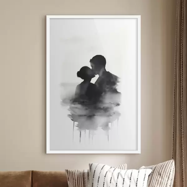 Poster Silhouet van een koppel in zwart-wit aquareltechniek Nr f41496