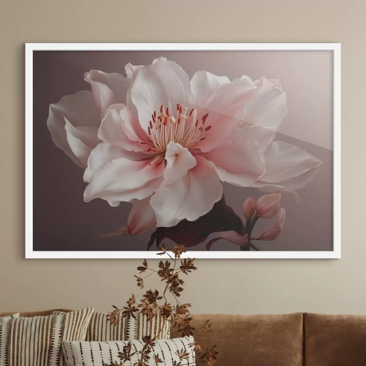Poster Roze bloem op roze achtergrond Nr f41506