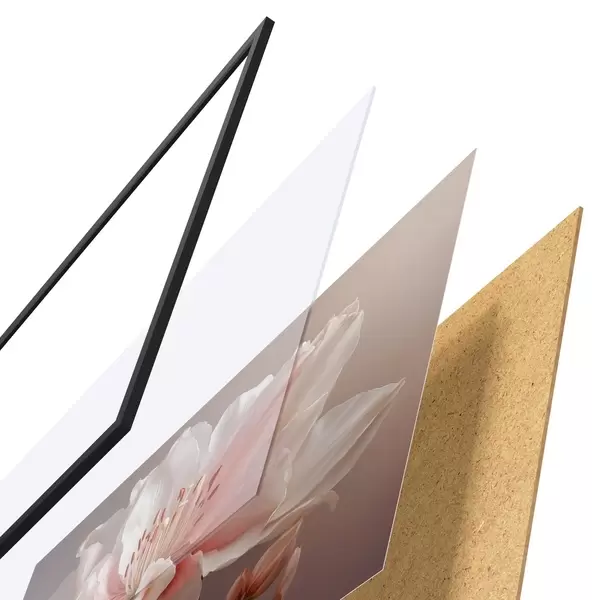 De poster bestaat uit een frame, plexiglas, geprinte afbeelding en spaanplaat achterkant. De poster kan meteen aan de muur worden gehangen dankzij de bevestigingen op de achterkant.