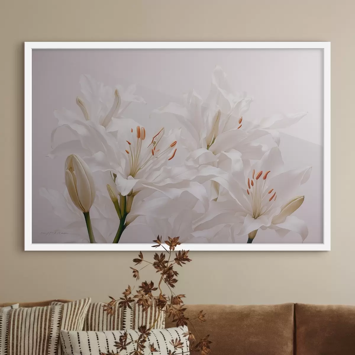Poster Witte lelies op witte achtergrond Nr f41513