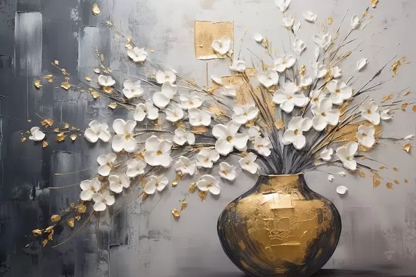 Poster Volumetrische kleine lichte bloemen in een vaas, imitatie olieverfschilderij Nr f41558