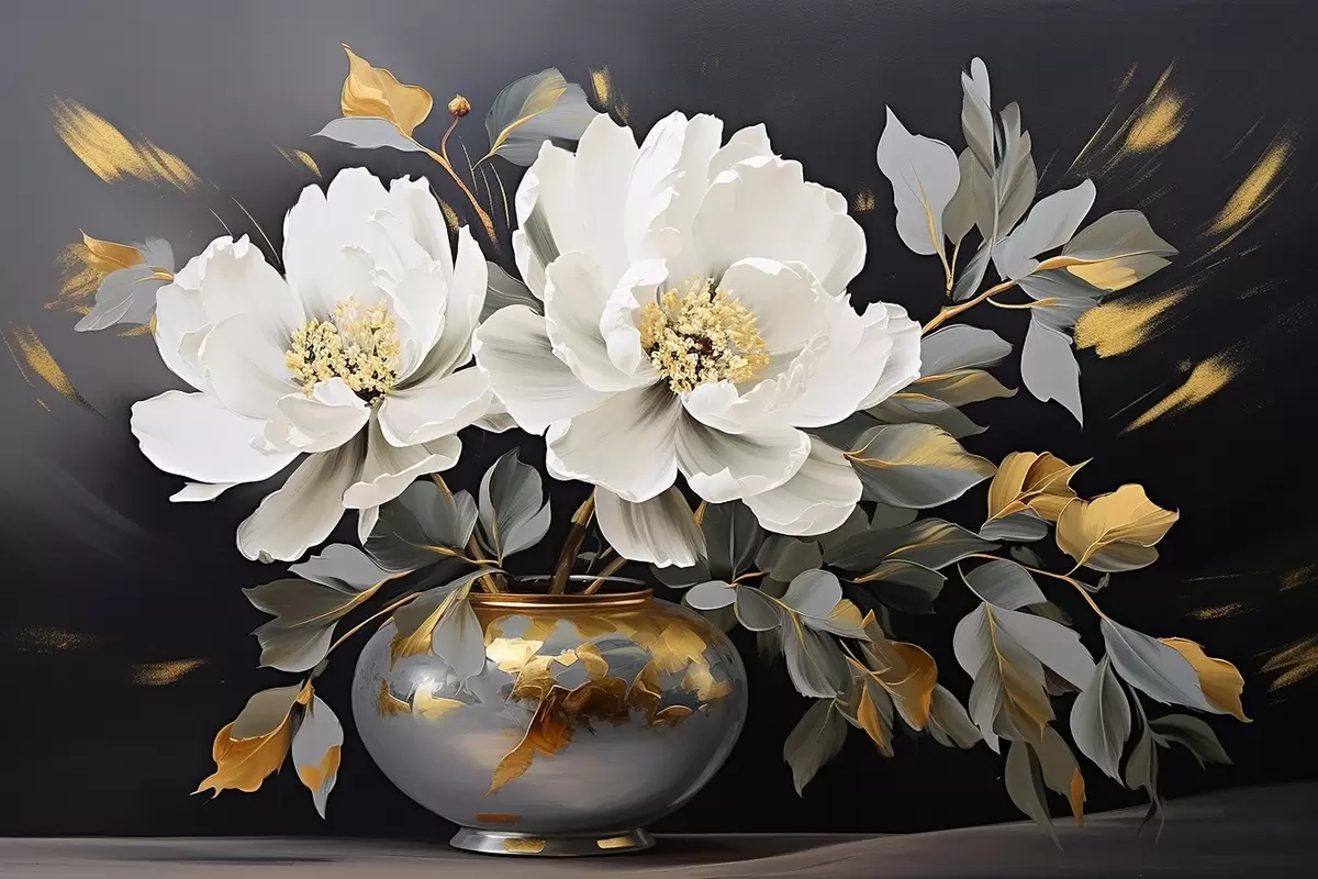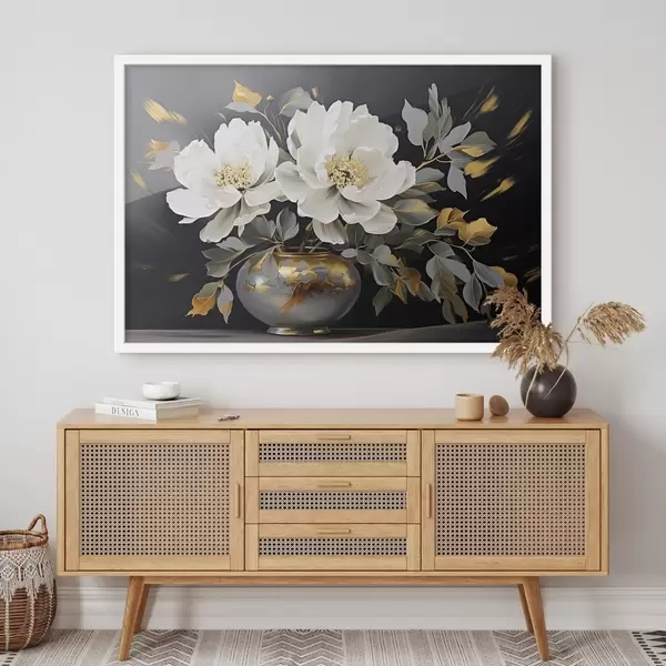 Poster Delicate witte pioenrozen in een vaas Nr f41568
