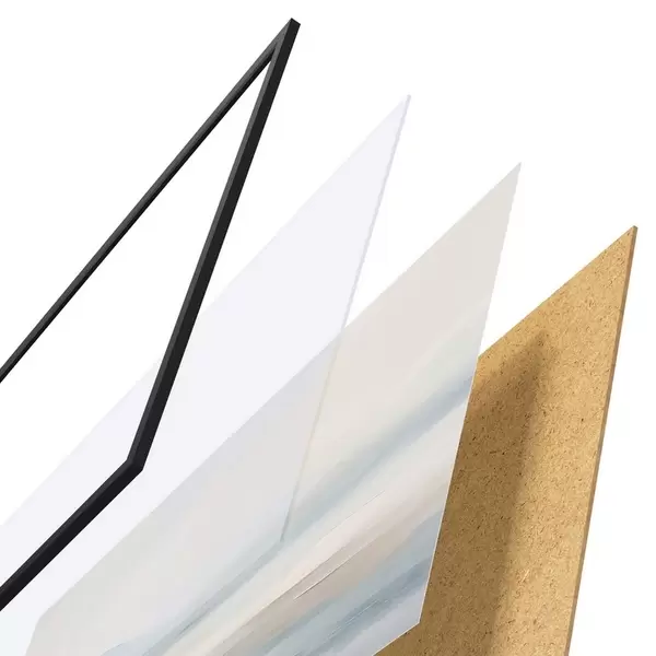 De poster bestaat uit een frame, plexiglas, geprinte afbeelding en spaanplaat achterkant. De poster kan meteen aan de muur worden gehangen dankzij de bevestigingen op de achterkant.