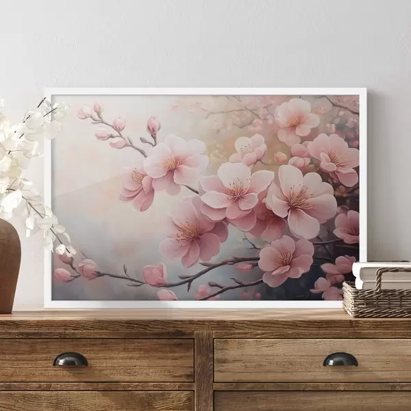 Poster takken met roze bloemen Nr f41628