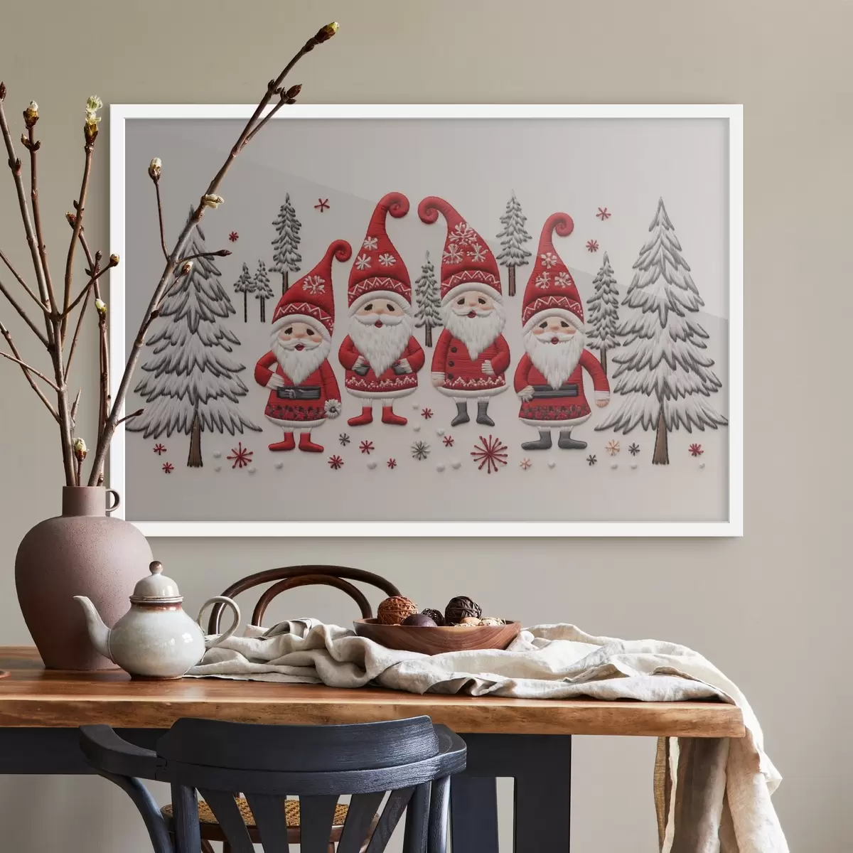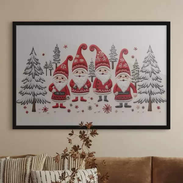 Poster Kerstkabouters in het bos met textuureffect Nr f41699