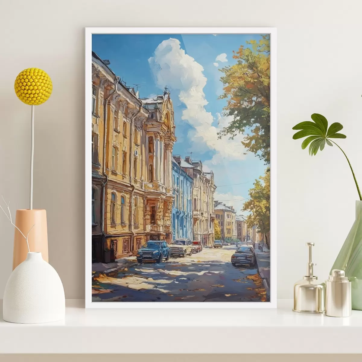 Poster Stadsstraat op een zonnige dag, in de stijl van olieverf Nr f41751