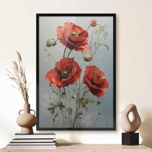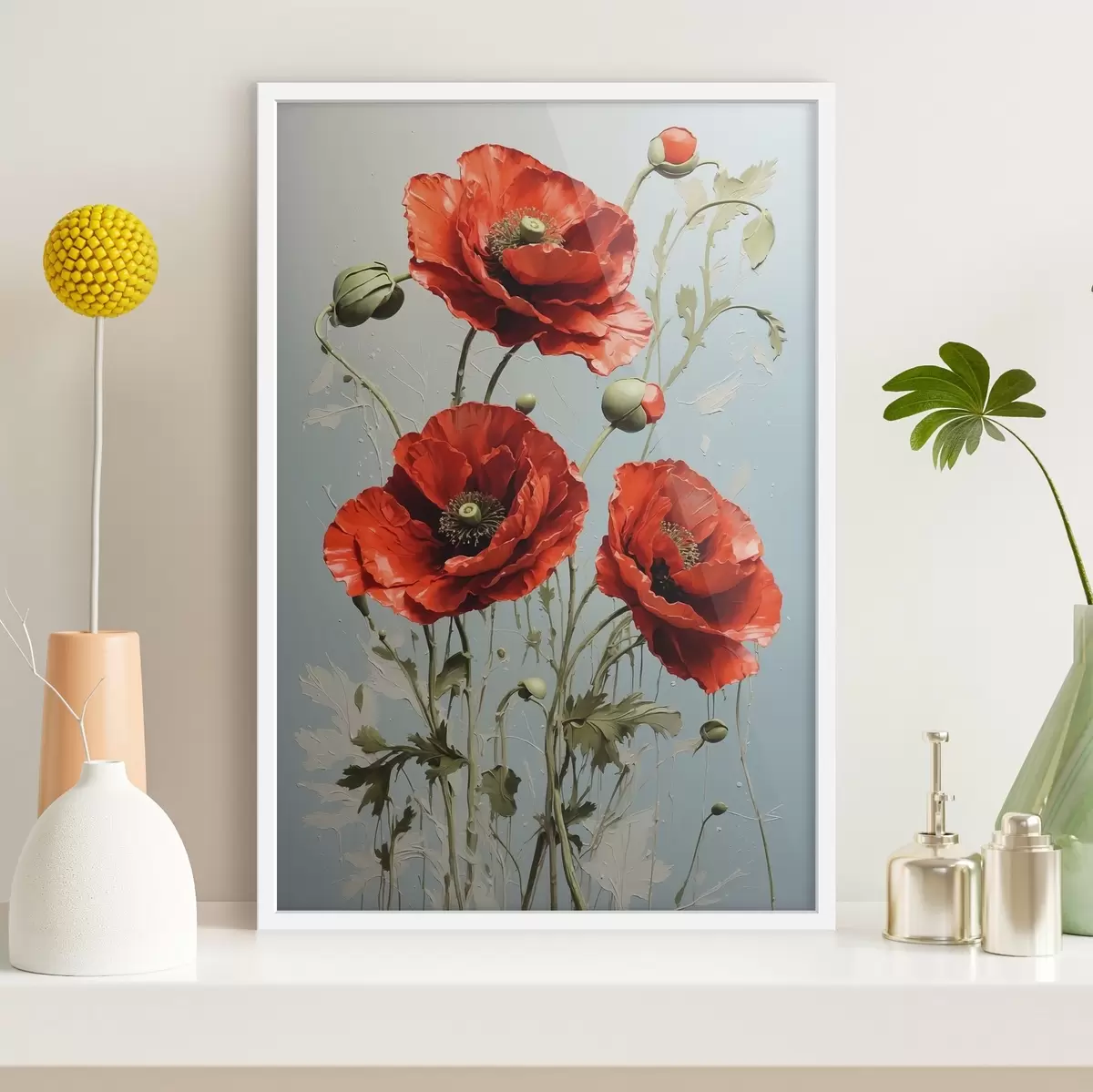 Poster Klaprozen op blauwe achtergrond Nr f41773