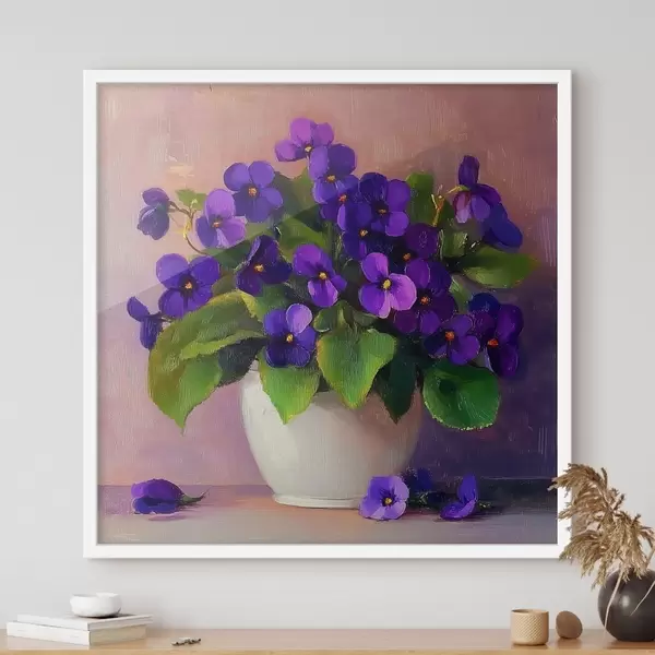 Poster Paarse viooltjes in een witte pot Nr f41823