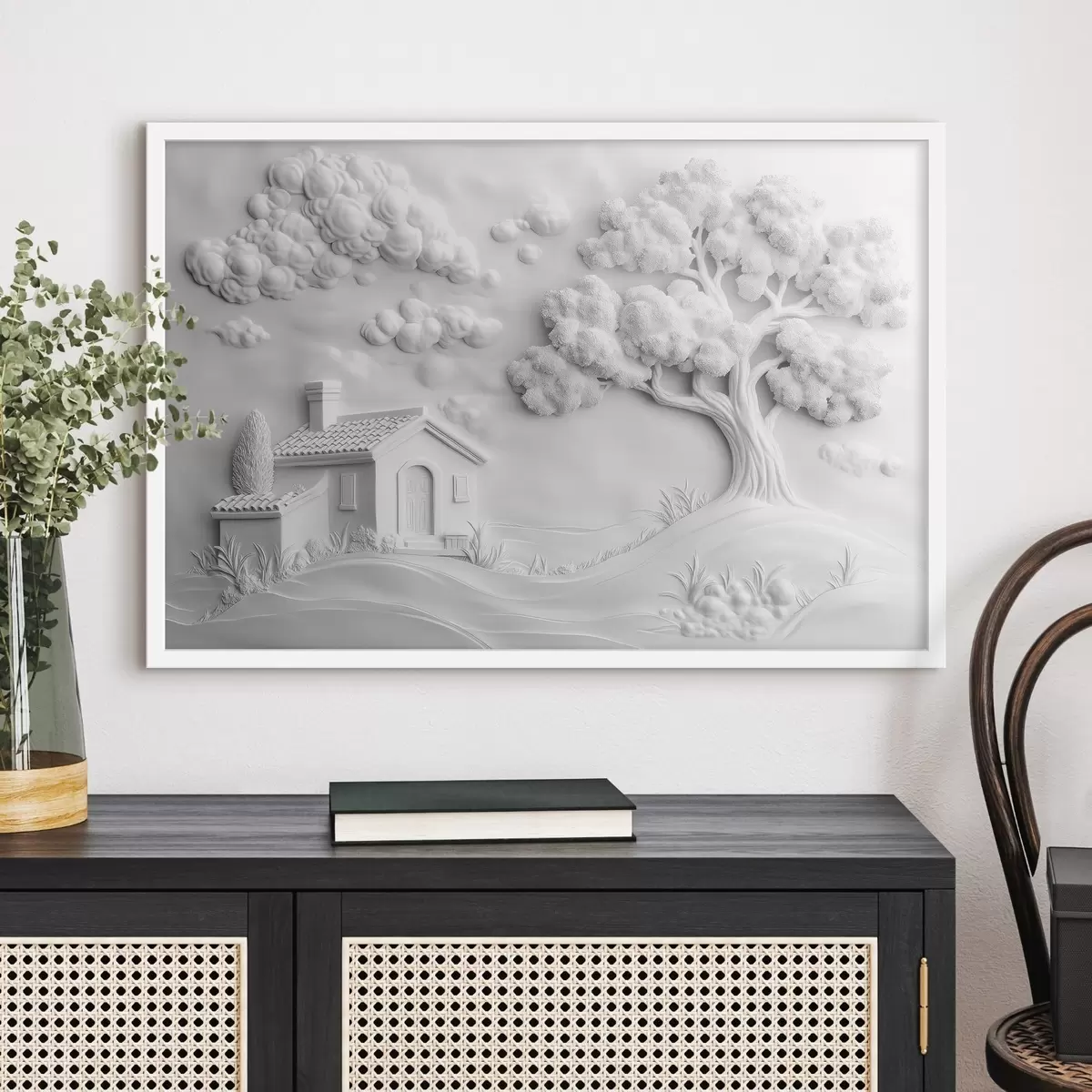 Poster 3D imitatie van stucwerk van een huisje in het dorp Nr f41878