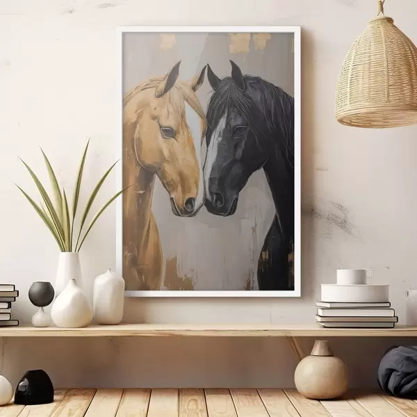 Je kunt het schilderij ophangen aan schroeven. Hiervoor leveren we bevestigingen bij onze foto's, zodat je de foto gemakkelijk kunt ophangen.
