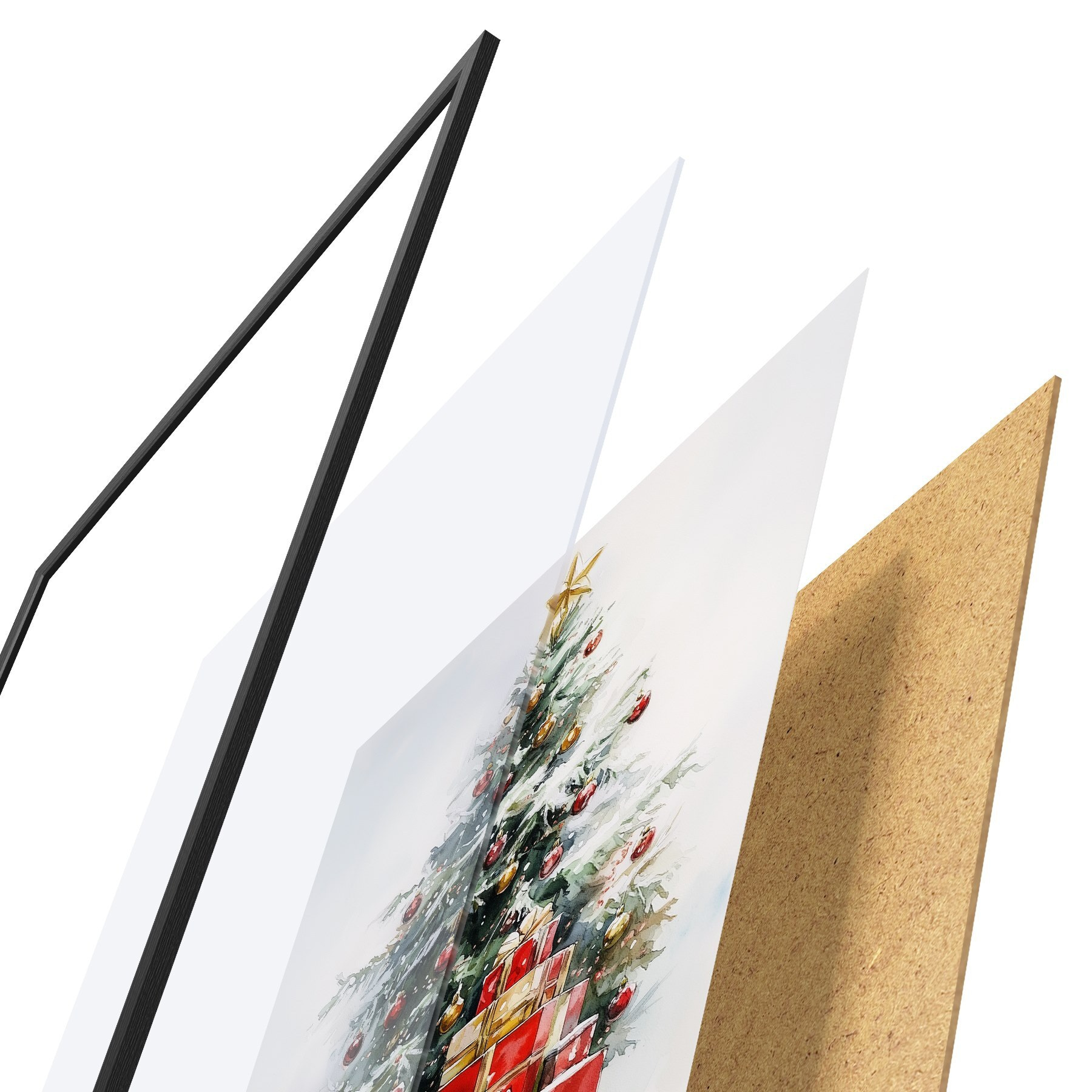 Poster Feestelijke kerstboom met ingepakte cadeautjes, sneeuw, aquarel stijl Nr f41953