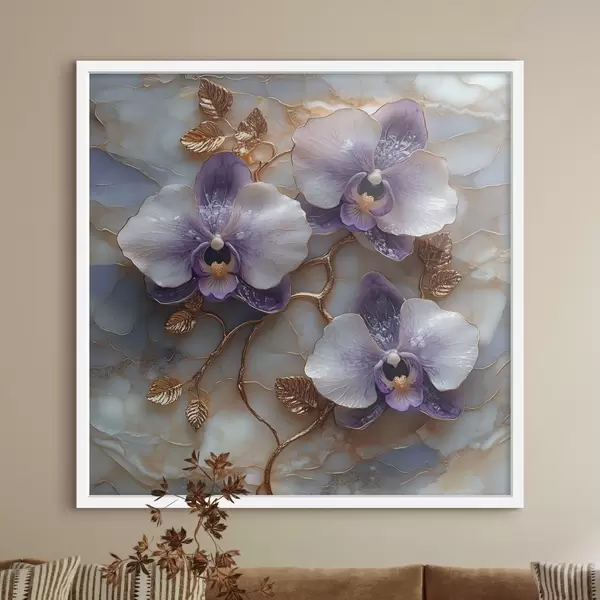 Poster Luxe orchideeën op een gestructureerde marmeren achtergrond f41984