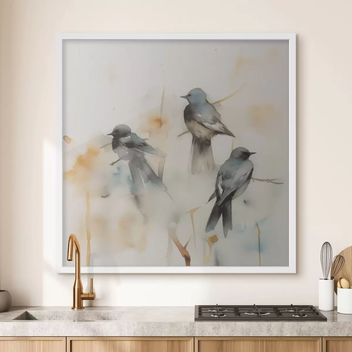 Poster Vogels imitatie natte aquarel stijl Nr f42031