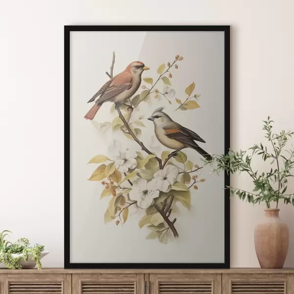 Poster Vogels op een tak vintage stijl Nr f42035