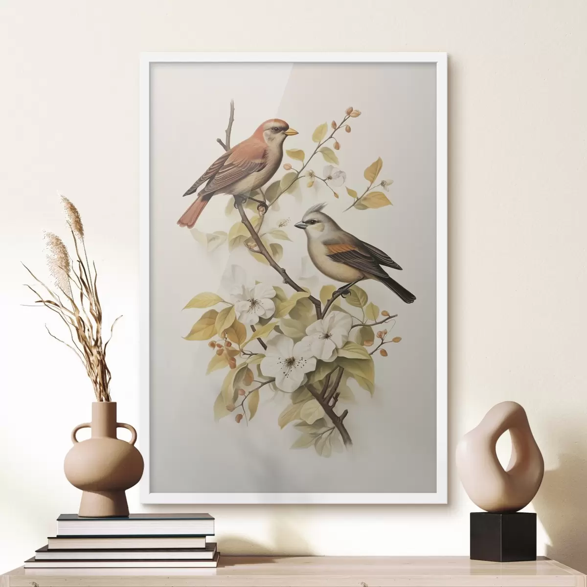 Poster Vogels op een tak vintage stijl f42035