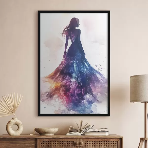 Poster Silhouet van een meisje in aquarelstijl f42078