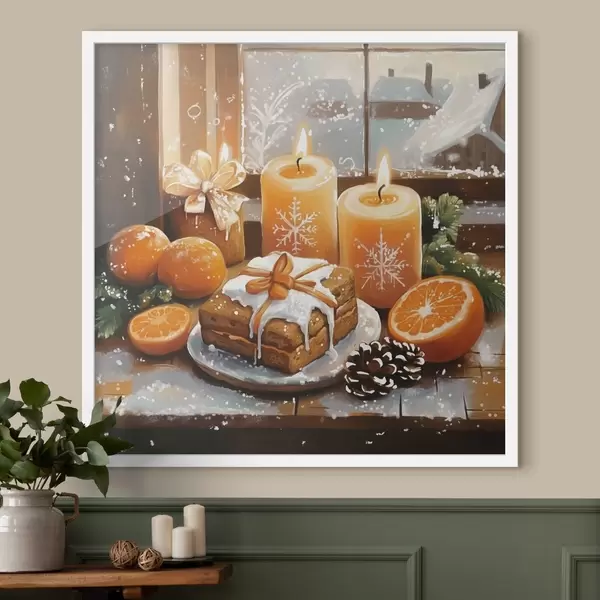 Poster Kerstcake, mandarijnen, kaarsen f42101