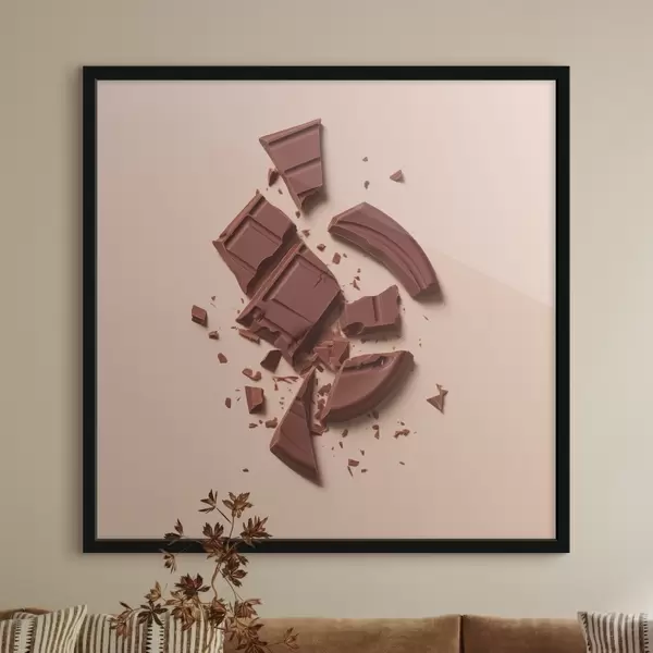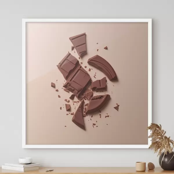 Poster Gebroken stukjes en kruimels chocolade in verschillende vormen Nr f42114