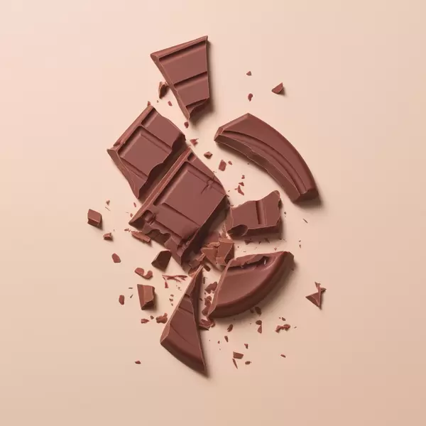 Poster Gebroken stukjes en kruimels chocolade in verschillende vormen f42114