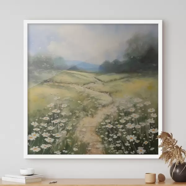 Poster Weide met madeliefjes imitatie van schilderij Nr f42134